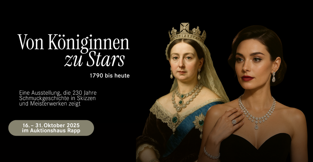 Am Donnerstag, 16. Oktober, ist die Jubiläumsausstellung des Auktionshauses Rapp in Wil eröffnet worden. Die Ausstellung schlägt unter dem Titel „Von Königinnen zu Stars“ eine Brücke von der Empire-Zeit ab 1790 bis zur Gegenwart. Präsentiert werden Schmuckstücke und Originalskizzen aus den Epochen des 18., 19., 20. und 21. Jahrhunderts. Neben Cartier und Fabergé sind weitere grosse Namen vertreten. Geschäftsführerin Marianne Rapp Ohmann möchte nicht nur die fertigen Schmuckstücke zeigen, sondern in Form der Zeichnungen auch ihren Entstehungsweg. Zur Eröffnung spricht die deutsche Schmuckhistorikerin Dr. Heide Rezepa-Zabel.