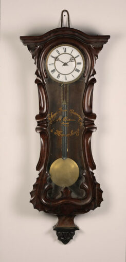 Vielleicht kennt mancher Leser Boy Lornsens Kinderbuch „Robbi, Tobbi und das Fliewatüüt“ von 1967. Das namensgebende Gefährt kann fliegen, auf dem Wasser schwimmen und wie ein Auto beim Fahren „tüüten“. Für die Flugfähigkeit ist es mit einem grossen Propeller ausgestattet. Eine solche Luftschraube hat auch die Uhr, die der belgische Uhrmacher Auguste Dardenne um 1881 gefertigt hat. Im Gegensatz zum Fliewatüüt läuft sie natürlich nicht mit Himbeersaft, sondern mit Windenergie.