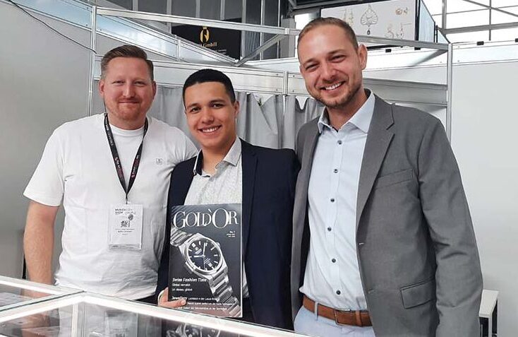 9-2025-Stones_Gemworld_KempfTobias Kempf (v.r.) mit Bruder Leonardo und Edelsteinfasser Arthur Krutsch.