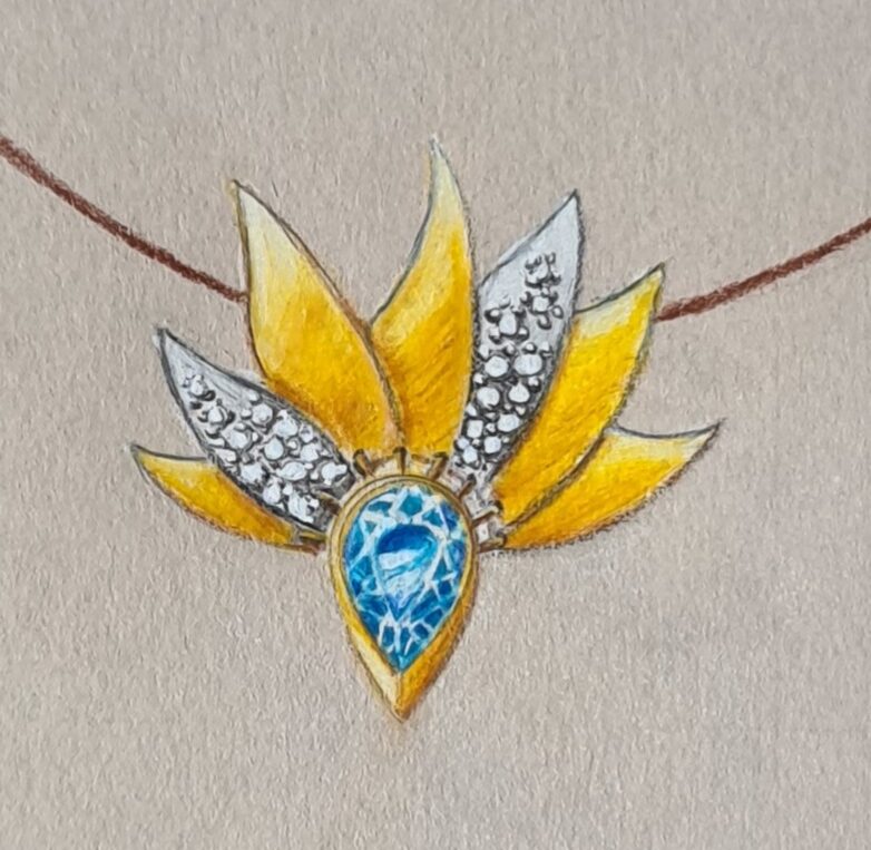 Die Aufgabe der jungen Goldschmiede: Sie sollten einen Anhänger für einen fiktiven Kunden entwerfen. Der 48-jährige Jean Burkhart ist Lebensmitteltechnologe, beobachtet in seiner Freizeit Vögel und hat auf einer Reise nach Costa Rica insbesondere die tropische Fauna kennen und lieben gelernt. Nun wünscht er sich einen Anhänger, der diese exotische Schönheit zum Ausdruck bringt. Bilder von bunt gefiederten Kolibris, Papageien und Tukanen dienten als Inspiration für die fünfstündige Prüfung an der Zürcher Berufsschule für Gestaltung im Juni. Für das Material gab es einige Vorgaben. So sollten Gelb- und Weissgold zum Einsatz kommen, die das Herzstück, einen Tropfen-Saphir, zur Geltung bringen. 15 bis 30 Brillanten mussten ebenfalls eingeplant werden, mit der Option, maximal die Hälfte durch farbige Saphire zu ersetzen. Möglich, aber nicht erforderlich war die Verwendung von Edelholz, Federn, Carbon oder Perlmutt. Abgedruckt sind einige Zeichnungen, mit denen die Goldschmiede Herrn Burkhart das Schmuckstück präsentiert hätten. ca