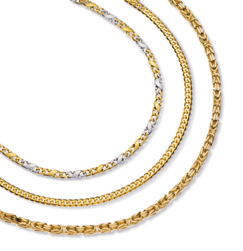 Parallel dazu lanciert Wassner anlässlich des Jubiläums eine Reihe neuer Colliers und Bracelets. Im Fokus stehen bewährte Kettenarten, die zeitgemäss weiterentwickelt worden sind, darunter die beliebte Rundanker-Kette in diamantierter, leicht stärkerer Ausführung, eine kompakte Francokette mit feinem Schliff sowie die wieder stark nachgefragte Kordelkette, die zusätzlich als Schmuckcollier und Bracelet in halbmassiver Ausführung angeboten wird. Ergänzt wird die Kollektion durch Königsketten, die mit ihrer hochwertigen Verarbeitung und einer markanten Optik überzeugen.