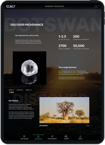 Wir arbeiten mit der Blockchain-Plattform Tracr von De Beers und vertreten diese in Europa. Tracr wurde von De Beers in Zusammenarbeit mit Accenture entwickelt und ermöglicht die lückenlose Rückverfolgung von Diamanten entlang der gesamten Lieferkette. Jeder Diamant erhält eine eindeutige digitale Identität, die sicher, überprüfbar und transparent ist. Dank PROV-T wird Rückverfolgbarkeit zudem zur Geschichte. Das Storytelling wird direkt im Zertifikat integriert. Aus Daten wird eine nachvollziehbare Erzählung, die Juweliere ihren Kundinnen und Kunden weitergeben können. Wenn Transparenz erlebbar und emotional wird, entsteht Vertrauen. red.