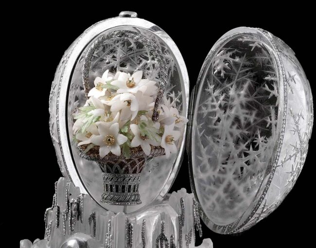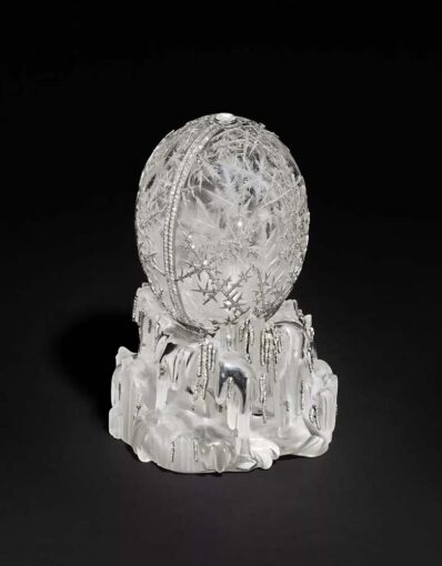 L’Œuf d’Hiver ne s’est pas contenté de séduire les yeux, il a également séduit les marteaux des enchères. Sa première apparition publique eut lieu chez Christie’s à Genève en 1994, où il fut vendu 7,26 millions de francs suisses, établissant déjà un record pour un objet Fabergé. Il repasse sous le marteau en 2002 à New York, pour atteindre la somme de 9,58 millions de dollars. Et voici que, le 2 décembre 2025, il est revenu sur le devant de la scène, cette fois-ci chez Christie’s Londres. L’estimation officielle est restée volontairement mystérieuse, indiquée simplement comme «in excess of 20 million pounds sterling», formule assez évocatrice pour faire rêver collectionneurs et médias sans livrer de chiffres exacts.