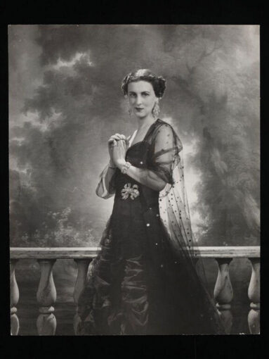 Princesse Marina de Grèce, duchesse de Kent, portant sa sublime broche noeud, (origine Russie, env. 1850- 1900) et de remarquables boucles d’oreilles (env. 1830). La photo datée de 1937 est signée Cecil Beaton (V&A Museum). The Al Thani Collection.
