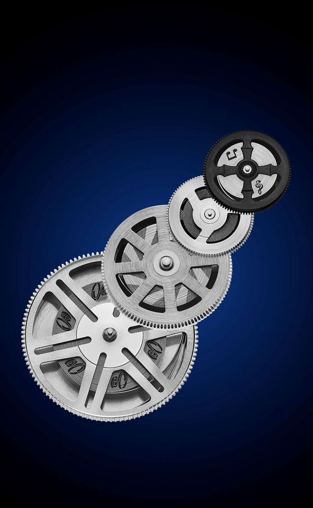 Pour cela, le leader du marché de ressorts de barillets a mis au point une technique de gravage/décoration de la tranche du ressort. Le motif gravé peut évoluer visuellement au fil du désarmage du ressort, créant un effet morphing spectaculaire qui anime la pièce avec subtilité et vie jusqu’à apparaisse au moins un deuxième élément de décoration lorsque le ressort de barillet est désarmé.