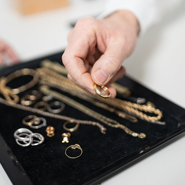 Für unsere Auktionen nehmen wir fortlaufend hochwertige Schmuckstücke und exklusive Uhren in Kommission. Besonders spezialisiert sind wir auf Vintage-Uhren sowie edlen Schmuck, darunter auch Art-Déco-Schmuck, Perlen- und Korallenschmuck sowie vergleichbare hochwertige Stücke.